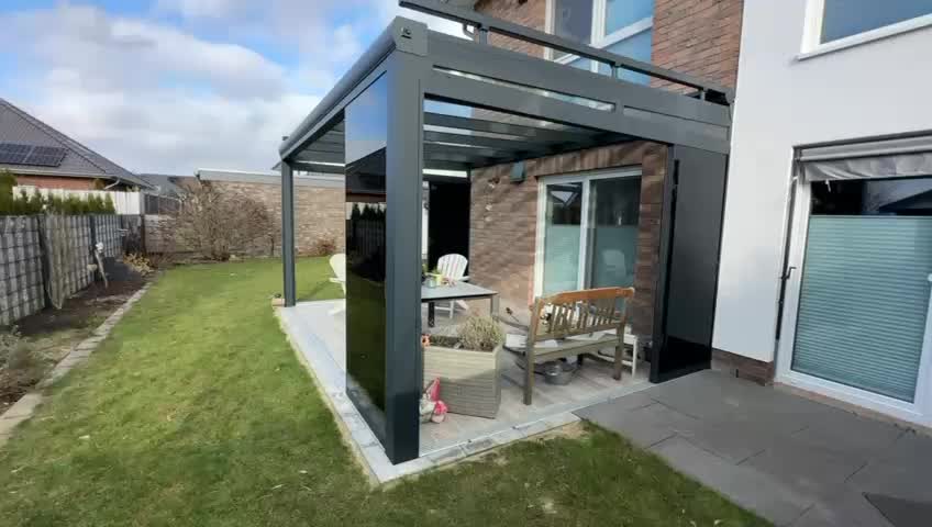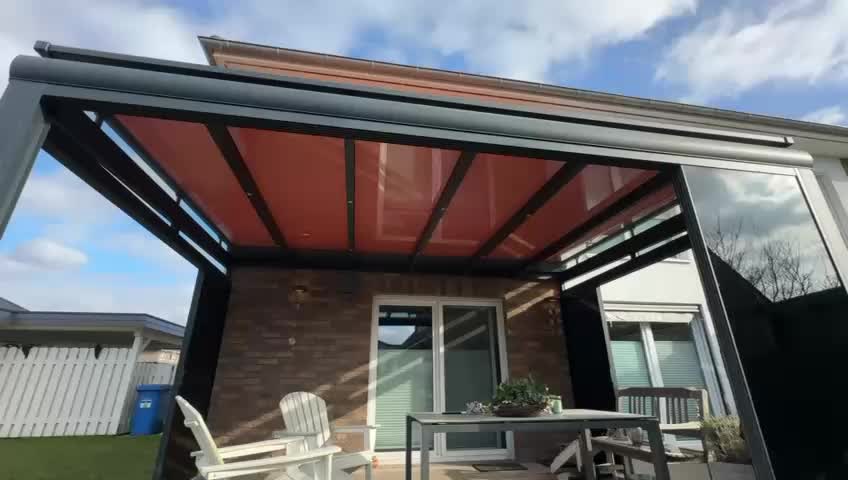 Eine Unterdachmarkise verwandelt Ihre Veranda in einen komfortablen Ort. Unser System wird unter dem Dach Ihrer Veranda montiert und sorgt für eine präzise Temperaturregelung, die Sie an heißen Sommertagen vor hohen Temperaturen und in den anderen Jahreszeiten vor kalten Wetterbedingungen schützt. So können Sie Ihren Außenbereich das ganze Jahr über genießen.